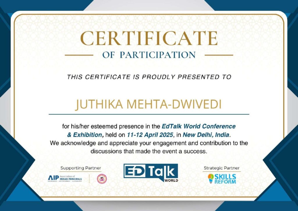 Our esteemed Chief Program Officer, Ms. Juthika Mehta, has been honoured with the Ed-Falcon Global Award 2025 by EdTalk World, earning the prestigious title of Leading Educator in Sports. 🌍✨